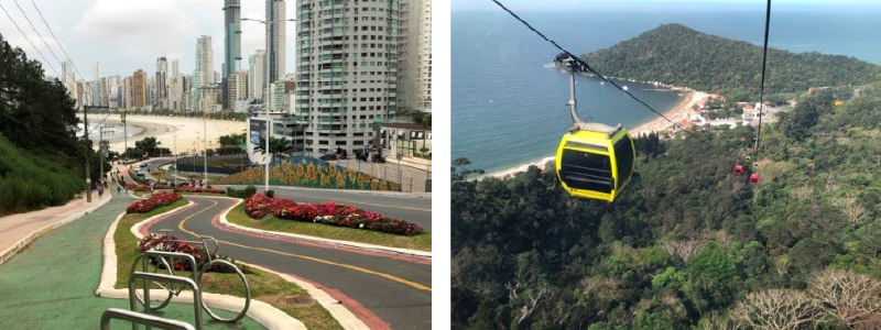 Aqui você irá visitar a Cidade de Balneário Camboriú, esta que abriga uma das mais belas praias do litoral Catarinense, também irá conhecer o Parque Uni Praias, O símbolo do parque são os 47 bondinhos aéreos interligando três estações entre o lado sul da orla de Balneário Camboriú, subindo até o Morro da Aguada e descendo até a praia de Laranjeiras. É o único do mundo a ligar duas praias, parque oferece mais que essa viagem nas alturas. Com privilégio vista da Mata Atlântica e do mar em todo o trajeto. Panorâmico pela praia e parada final na RODA GIGANTE (Rua torta para fotos).